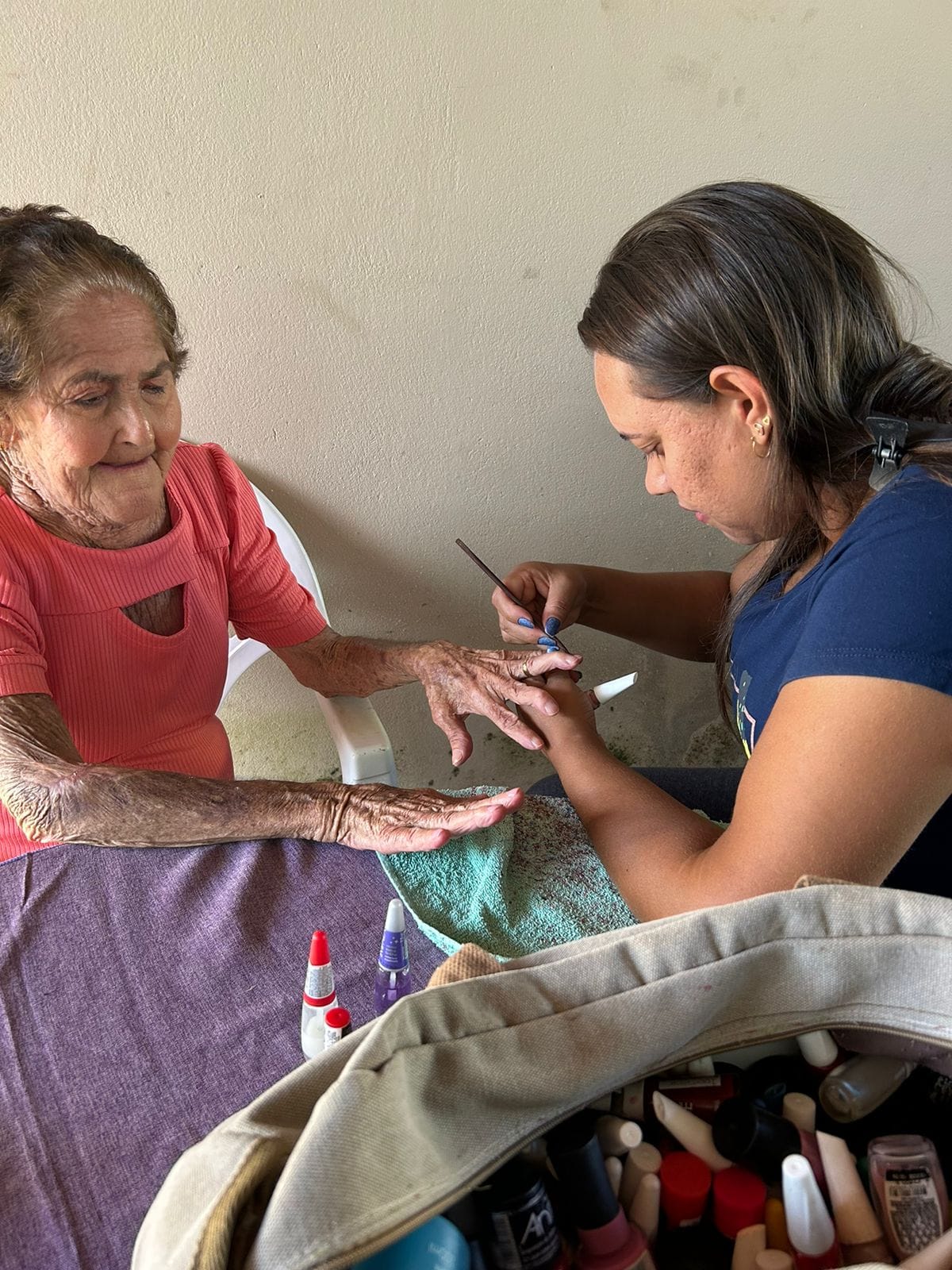 Os assistidos da Vila Vicentina foram presenteados com uma tarde de autocuidado em comemoração ao dia das mães: corte de cabelo, maquiagem, design de sobrancelha e manicure.