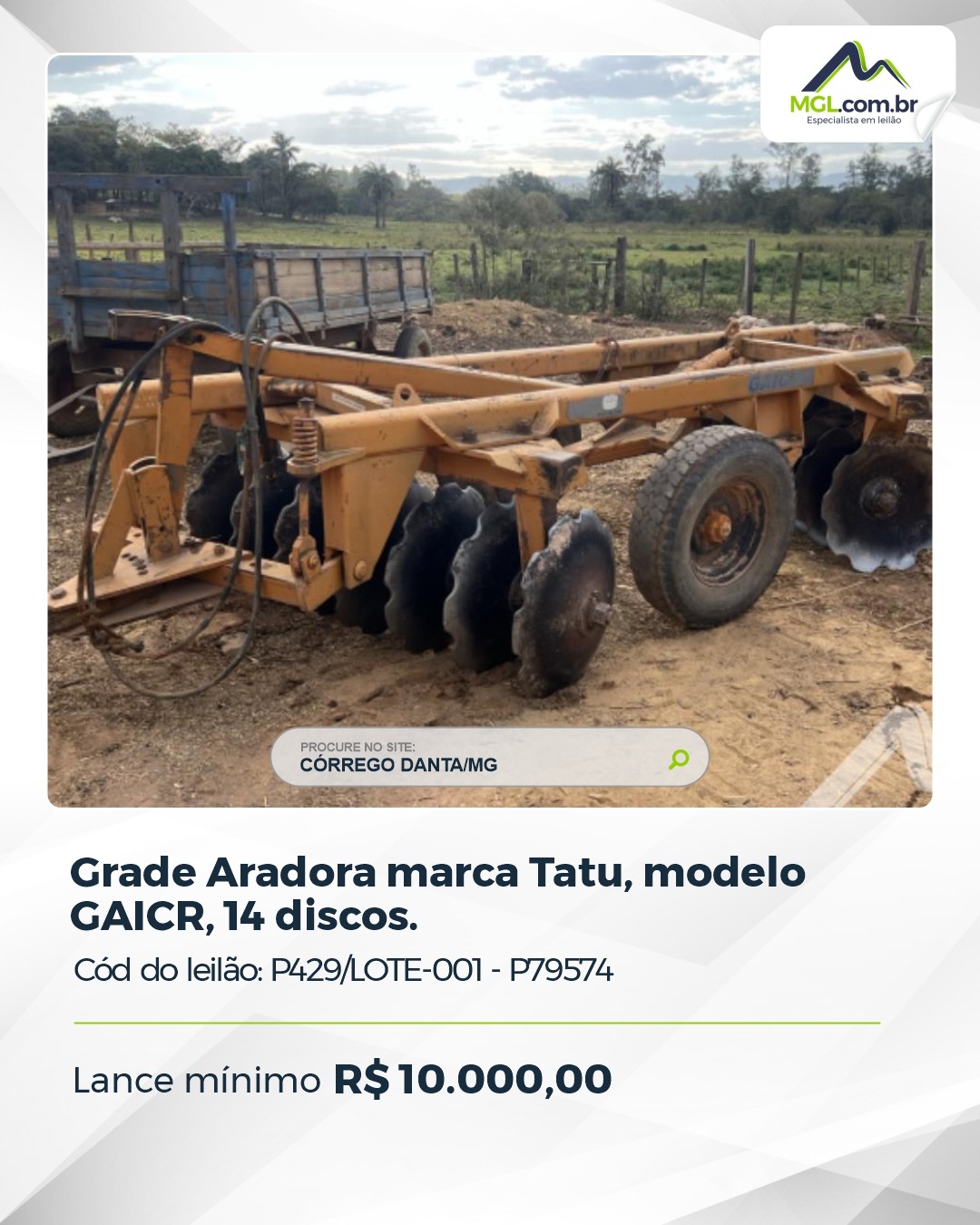 Dia 19/10 às 10h30, leilão online pelo site www.mgl.com.br