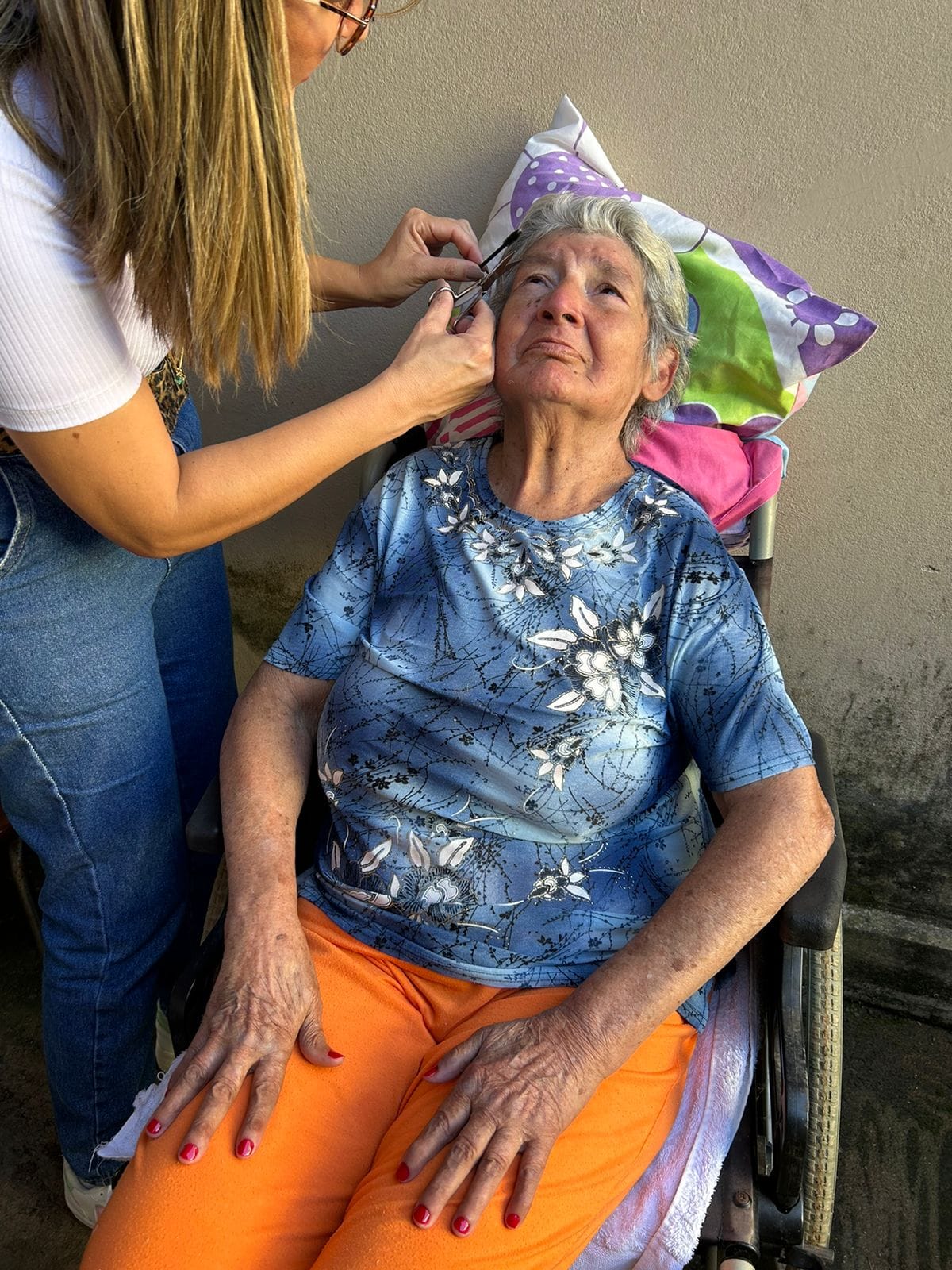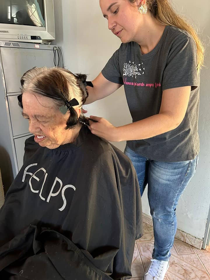 Os assistidos da Vila Vicentina foram presenteados com uma tarde de autocuidado em comemoração ao dia das mães: corte de cabelo, maquiagem, design de sobrancelha e manicure.