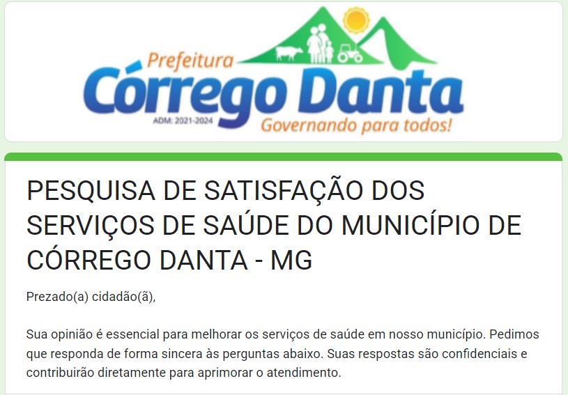 PESQUISA DE SATISFAÇÃO DOS SERVIÇOS DE SAÚDE DO MUNICÍPIO DE CÓRREGO DANTA - MG